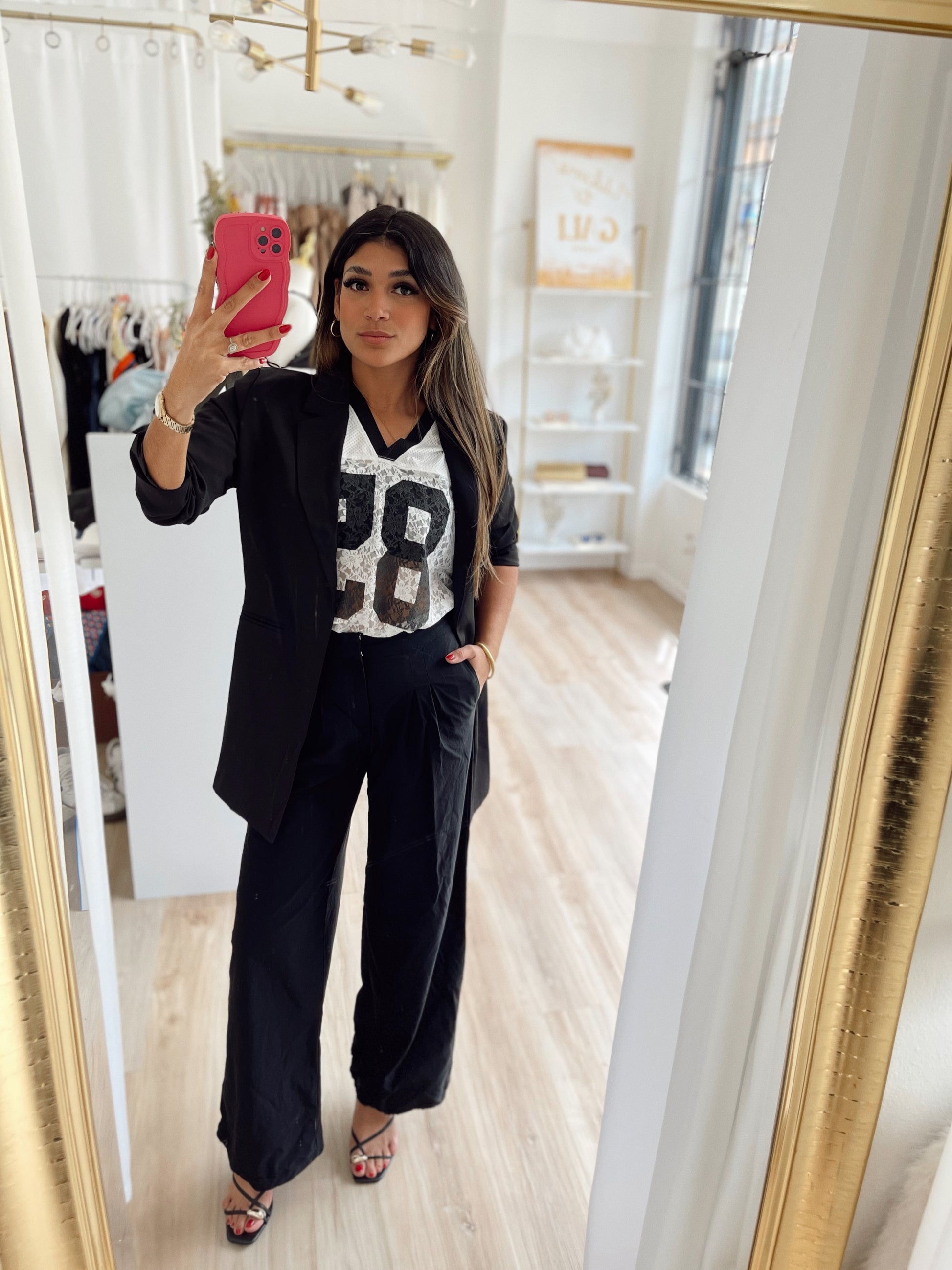 The white x lace jersey top